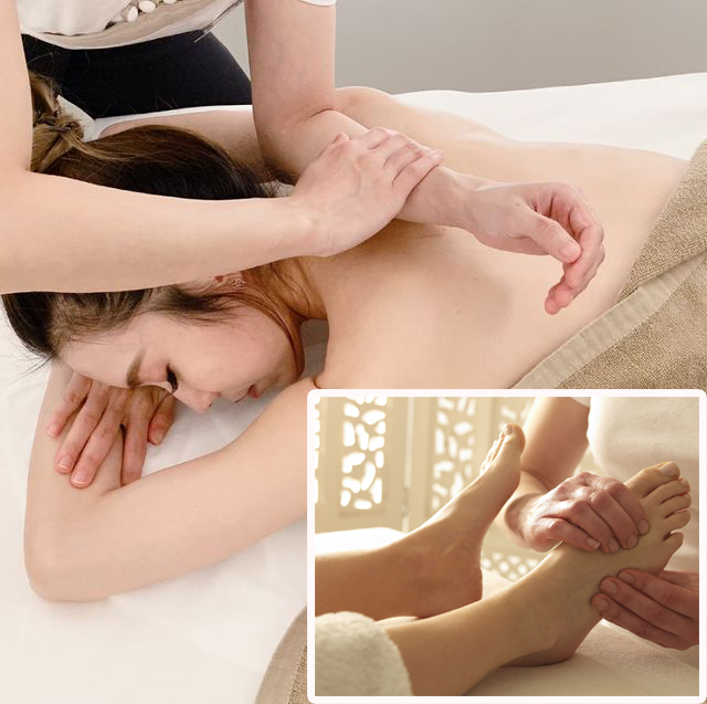 A combo back relax and foot reflexology offer a comprehensive relaxation experience by combining techniques for both the back and feet.This treatment integrates soothing strokes for the entire body with focused attention on the feet,which are often underappreciated.Perfect for those seeking total relaxation and relief from foot fatigue,this massage revitalizes and refreshes.